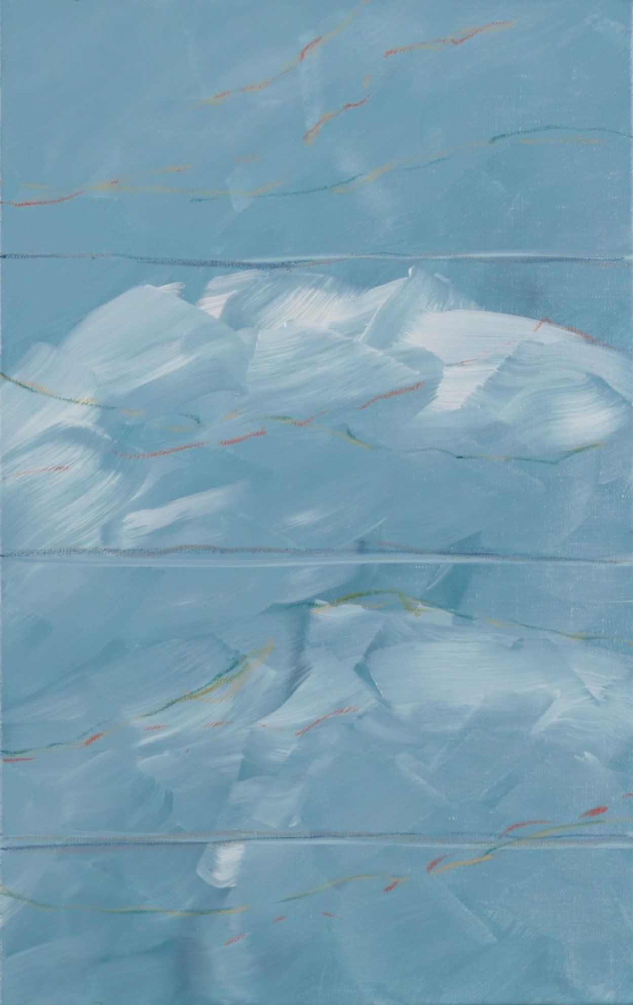 Mit der langsamen Öffnung des kulturellen Lebens im Herbst 2021 ergab sich auch ein signifikanter Impuls für die künstlerische Arbeit. Führte die Corona-Pandemie zunächst weniger zu einer künstlerischen Sprachlosigkeit als vielmehr zu der elementaren Erkenntnis, dass künstlerisches Tun Öffentlichkeit benötigt, um überhaupt relevant zu sein. Erst die Begegnung, die Konfrontation und die Reflexion mit Rezipienten verdeutlicht die Sinnhaftigkeit künstlerischen Tuns, die zwar einerseits die stille Arbeit im Atelier ausmacht, andererseits aber keine Kunst der Kunst wegen darstellen soll, kann und möchte. Nachdem das erste Projekt „UNSICHTBAR“ den Verlust der Öffentlichkeit formal als künstlerische Aktion darstellte, wurde mit dem zweiten Projekt „Bewegungen“ angestrebt, der veränderten Situation von künstlerischem Tun und Öffentlichkeit zu entsprechen. Als Sujet für diesen zweiten Schritt erschien die Auswahl eines Malerei immanenten Problemfeldes sinnvoll und folgerichtig. Sobald man den Begriff einer neuen Lebendigkeit nach dem Lockdown wörtlich nimmt, bietet sich der Begriff der Bewegung als Leitmotiv für diese künstlerische Auseinandersetzung an. Zwar schließt die grundsätzliche Statik eines Bildträgers den Begriff der Bewegung aus, andererseits vermag die Malerei abstrakte Begriffe wie Bewegungen und Bewegung zu illusionieren. Faktisch werden keine echten Bewegungen gezeigt, vielmehr entsteht die Idee einer Bewegung. Um daraus ein interaktives Projekt gestalten zu können, erschien es naheliegend, eine Bilderreihe wie einen Filmstreifen zu schaffen, der immer wieder neue Einstellungen zeigt und auch mit den filmischen Mitteln Schnitt und Gegenschnitt arbeitet. So wurde vor diesem Hintergrund ein Bilderband konzipiert, das bei einer einheitlichen Höhe von 55 cm unterschiedliche Formatbreiten aufweist und als Installation möglichst fortlaufend gehängt werden soll. Ein Rhythmus innerhalb der Bilderfolge ergibt sich auch durch die Verwendung der Medien Fotografie und Malerei.