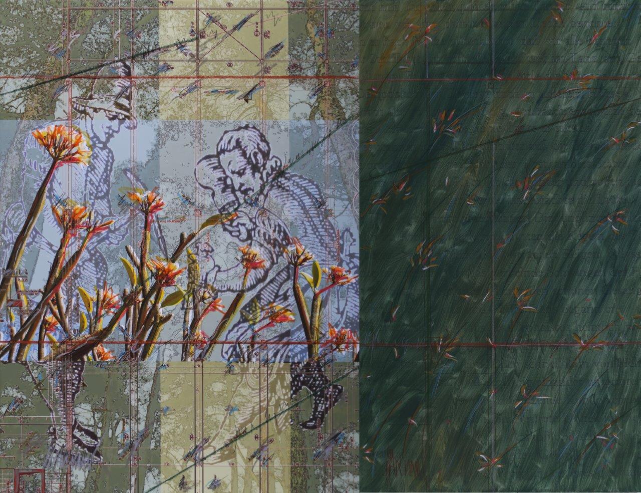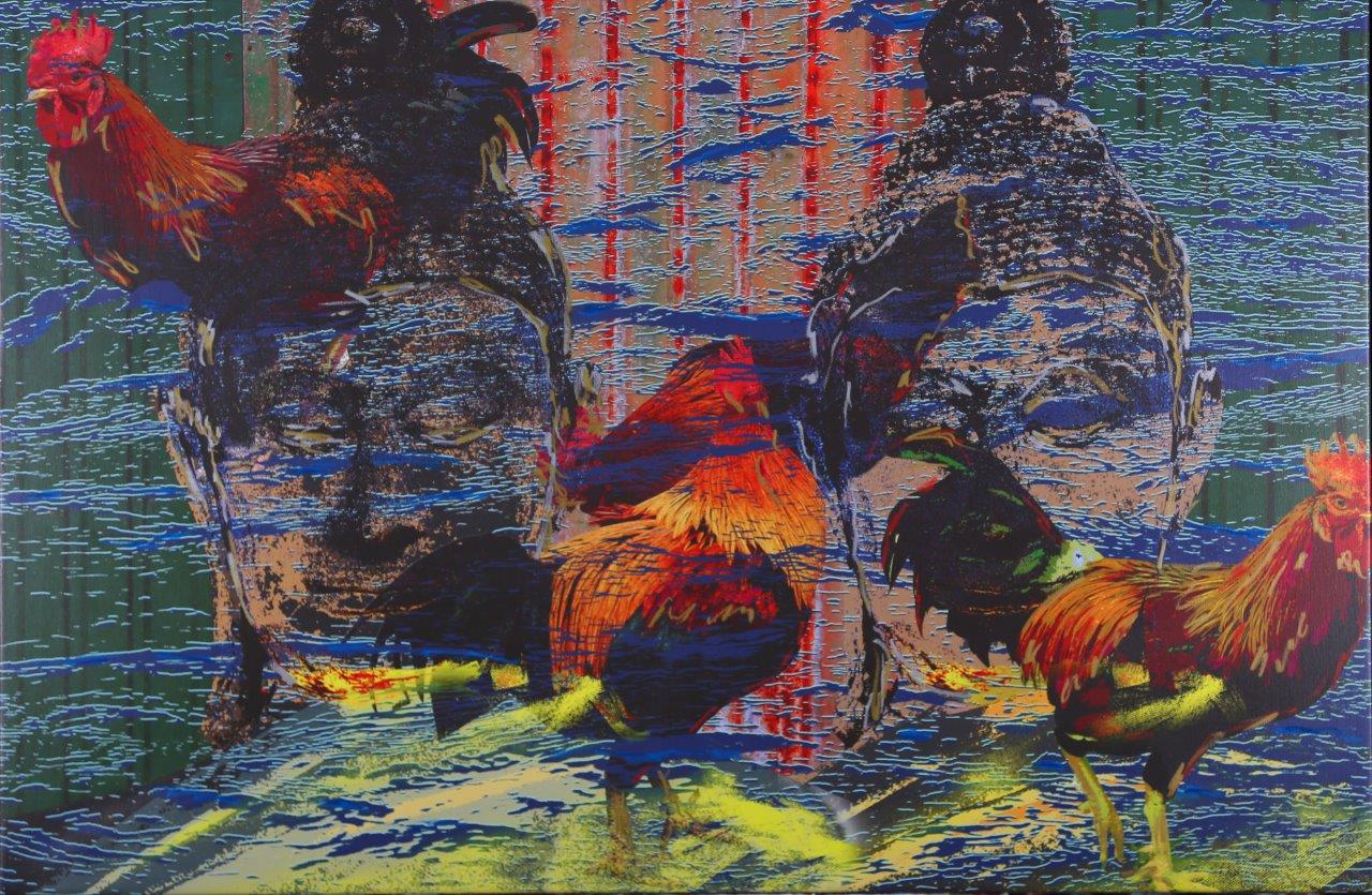 Eine Studienreise nach Laos und das Goldene Dreieck führte zu zwei Serien, die sich it dem Thema Buddhismus auseinandersetzen. Während vier große Querformate Buddhafiguren im Zentrum zeigen, die in Bezügen zu Fischen und Vögeln stehen, verweisen die alten Portraits junger Lao auf die Begriffe Vergänglichkeit und Zeit.