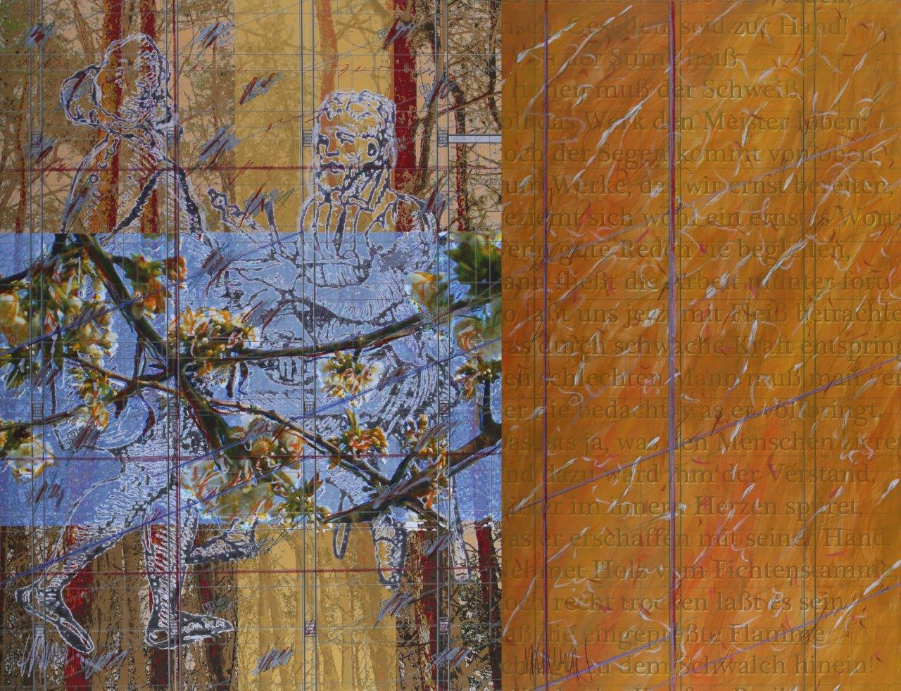 Im Zentrum dieses Werkkomplexes stehen fünf großformatige Bilder zum Handwerker. Zur Visualisierung einzelner Handwerker wurde auf einen Bilderzyklus des spätmittelalterlichen Holzschneiders Jost Amman zurückgegriffen, der in seinem Ständebuch beispielhafte Darstellungen unterschiedlicher Berufe zeigt. Für dieses Projekt wurden die Berufe Waagenmacher für den Feinmechaniker, Schlosser und Steinmetz ausgewählt, die Verwaltung verkörpern die Motive Kaufmann und Prokurator. Die historischen Abbildungen begegnen in den Bildern Fotos von Waldstücken und knospenden Zweigen, die sich auf die unmittelbare tatsächliche Umgebung des Berufsbildungs- und Technologiezentrums und auch fremde Elemente beziehen, sowie Architekturzeichnungen des Gebäudes, in dem sich diese Bilder konkret befinden.